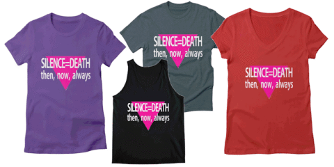 With that in mind, I have decided to offer my version of the message, updated, as part of my shop at Threadless. The Pink Triangle is a large element as a reminder of the source of the phrase and its potency. Please note that the bulk of the selling price covers the custom production of your order and all the back-end work involved in processing your order. It joins other designs that express queer pride and support my work as an independent Creative.