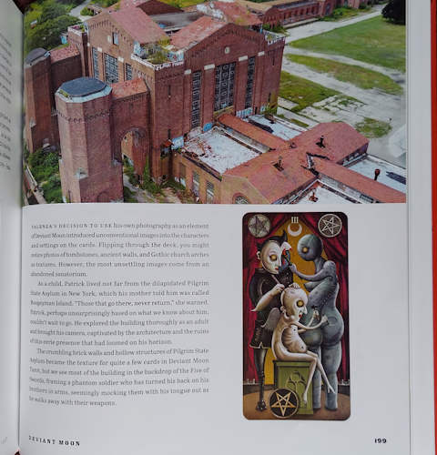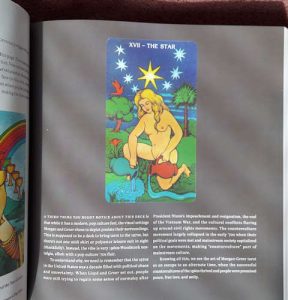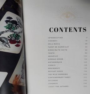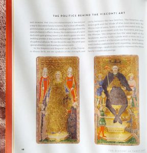 The book looks at the history of Tarot card art through 12 Chapters, each focused on one deck; from the oldest-known deck (The Visconti from the 1450s) to 2012’s The Wild Unknown . Each chapter looks at the artwork, but also the culture/society of the time and includes a few similar decks to consider (“if you like that, you might like these“). There are a great number of good-sized images from dozens of decks.