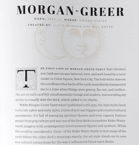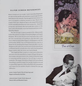 The authors make clear the true (or likely) origin stories for the various fantastical Tarot origin stories that continue to float around the world- digital and physical. I’ve always been clear that Tarot, and other versions of Oracle decks, are but images printed (or painted, drawn, etc) on standard card or paper stock. Now, of course, many are printed on nicer quality (often thicker, coated, decorated with metallic ink, and/or UV coating) stock.