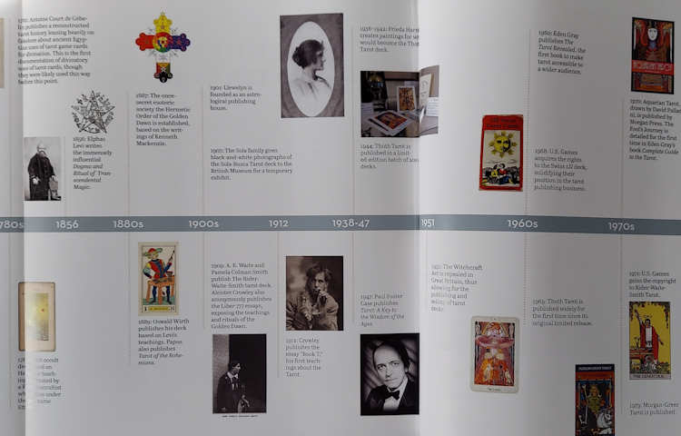 Those are followed by a broader Contemporary Tarot chapter, as well as a fold-out Tarot history timeline, a deck of 24 cards, notes on card meanings, and suggestions on how to read the cards.