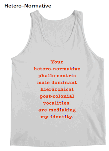 Don’t resort to their vulgar level of name-calling; raise your language. Express just how their policies and practices impact you and your community. “Your hetero-normative phallo-centric male dominant hierarchical post-colonial vocalities are mediating my identity.