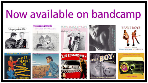 Six albums of music by Romanovsky & Phillips and four of Ron Romanovsky‘s later solo releases are now available to purchase at Bandcamp. New visitors to my blog should visit this page for their impressive biography, as well as information on how I’m doing my part to keep their place in our history alive.