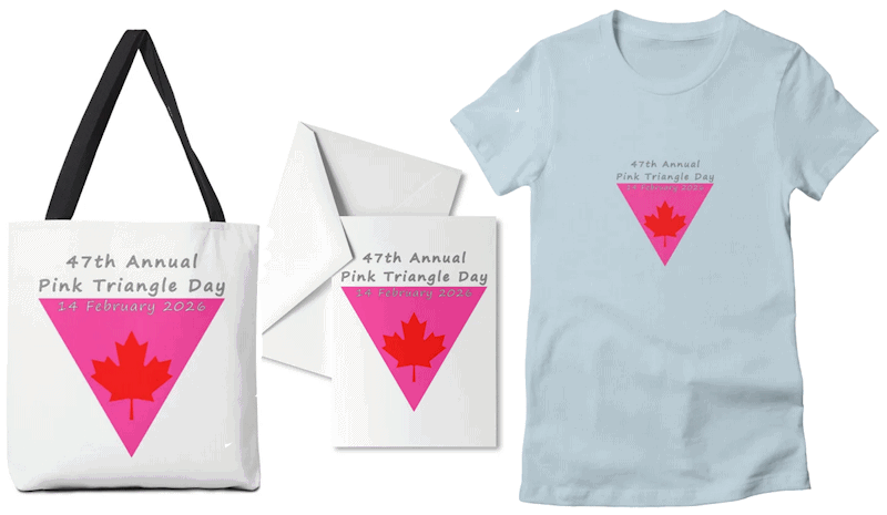What (if anything) do you celebrate on February 14th? For some the day is just another corporate-driven excuse to spend money; as the credit card bills from last year’s Holiday season are coming due. There are many queer folk who tune it out as a very hetero event; far too similar to legal weddings that, for so long, has been denied us. Another reminder of our fight for respect and equality. Such feelings were no doubt part of the reasoning behind the 1979 declaration of February 14th as Pink Triangle Day by the membership of the Canadian Lesbian & Gay Rights Coalition.