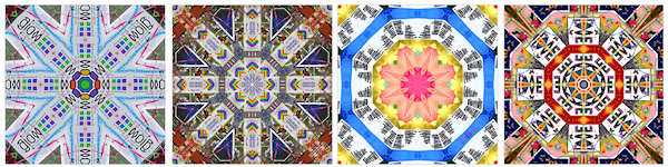A mini-series of kaleidoscope prints, each based on one of my photographs from the Toronto (Ontario) LGBT/Q Pride Parades. Below I show just the top right quarter- click the image to see the full piece, and the various options available from my Fine Art America galleries.